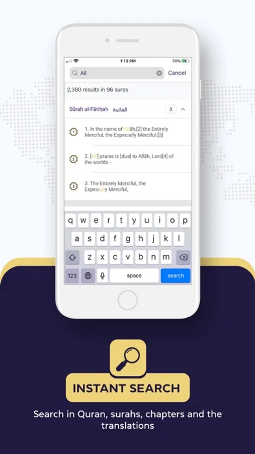 - Instant and quick search for surah names, chapters and holy Qurān's text.