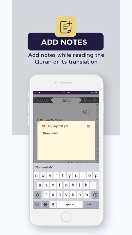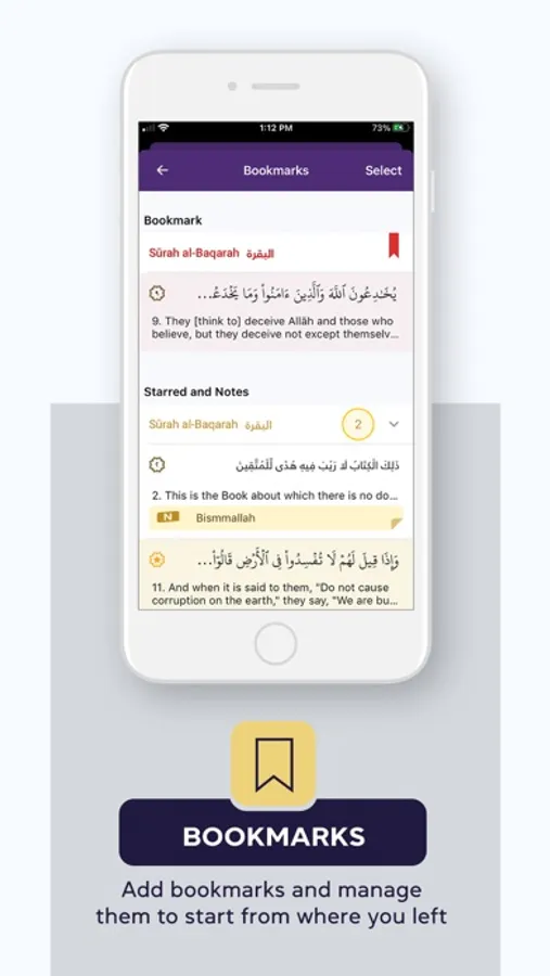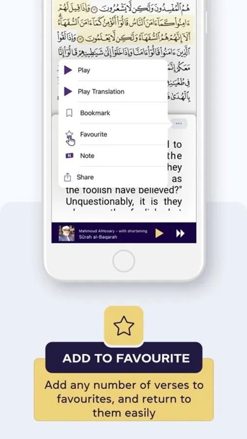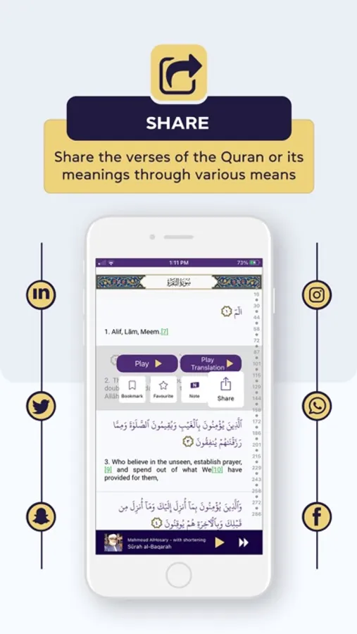 - Ability to bookmark any verse, add any number of verses to your favorites, and write your thoughts while reciting the Qurān or reading the translation of its meanings.