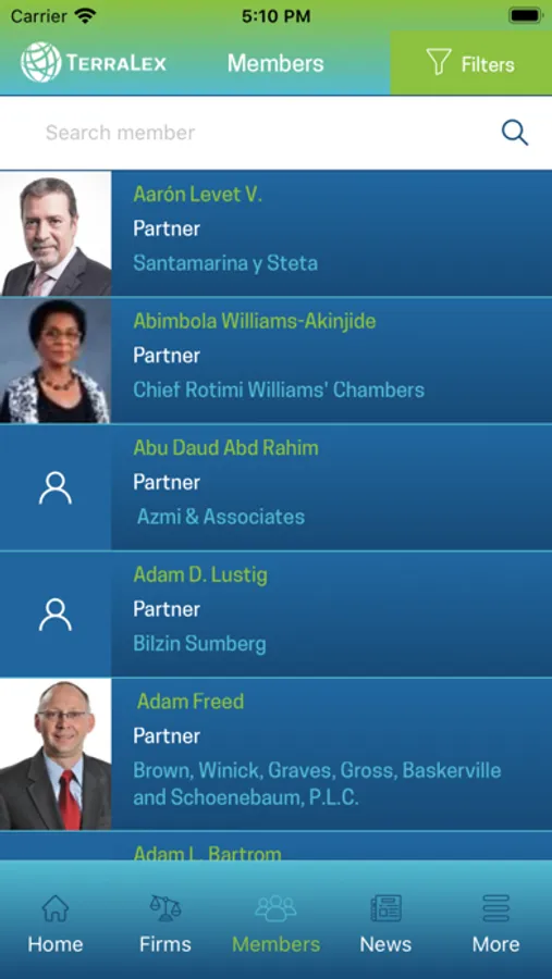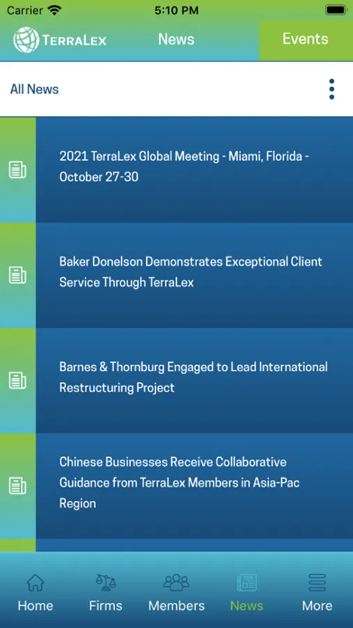 TerraLex’s streamlined app allows you to find member law firms, lawyers, or specific expertise with just a few clicks, whether you are online or without internet access. Use filters to help narrow your search to your region or the area of expertise you are looking for. The News section keeps you abreast of what is new with TerraLex members, and push notifications help keep you abreast of the latest TerraLex events and business opportunities.