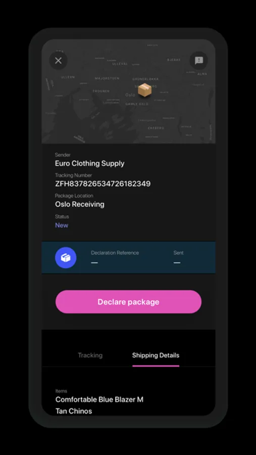 I appen kan du enkelt følge med på pakkens reise hjem til deg.