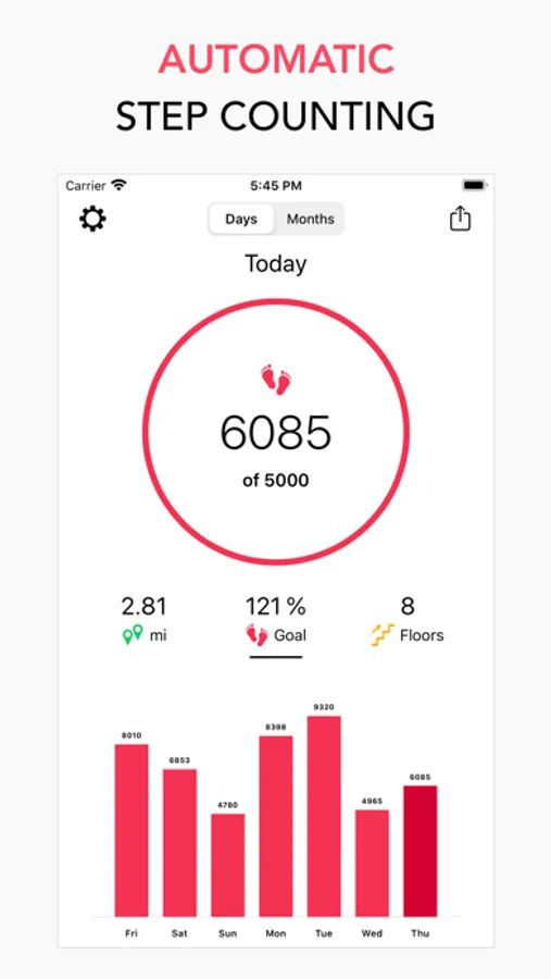Set your goal, put your iPhone in your pocket and let the App automatically record your steps and distance during the day.