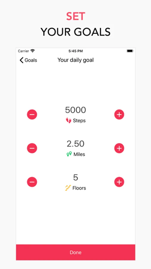 Apple Health: Goals can use Apple Health to access your steps, distance and flights climbed data.