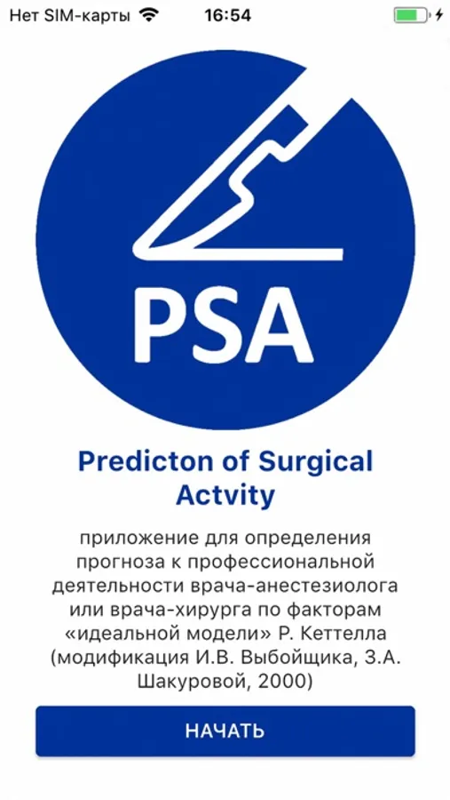 Психологический прогноз успешности в хирургической деятельности для студентов, поступающих в ординатуру. Цель приложения - определить ведущие психологические качества у кандидата и установить возможности студента в освоении специальности хирурга или анестезиолога и сделать предварительную оценку ее эффективности.
