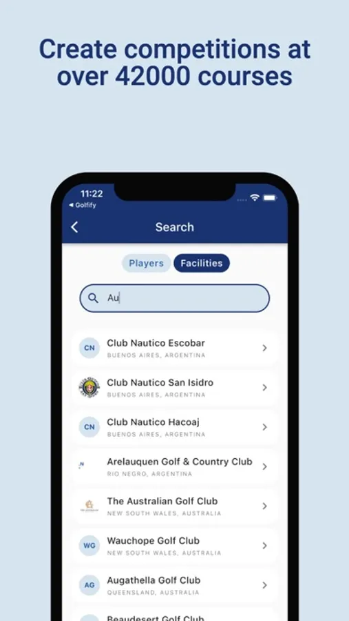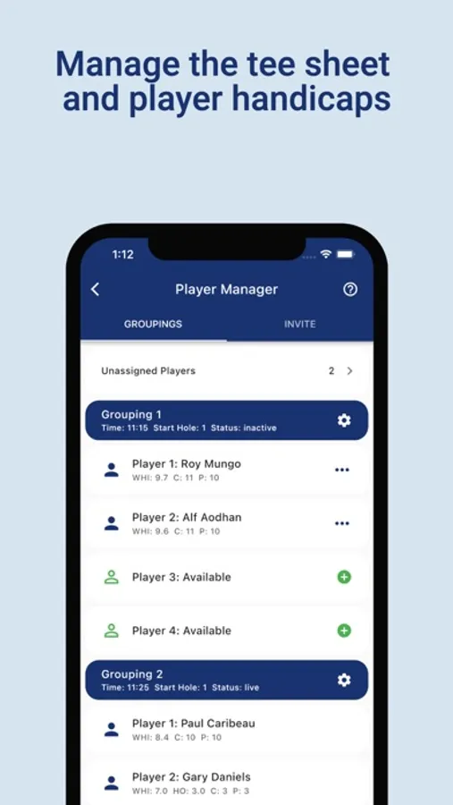 Anyone can create competitions in just a number of seconds. Choose from a number of game modes and over 42,000 courses worldwide. Invite players to join the competition, or add them manually users. There only needs to be one active device per a group to score. This is perfect when you have players who don’t want to use the app.