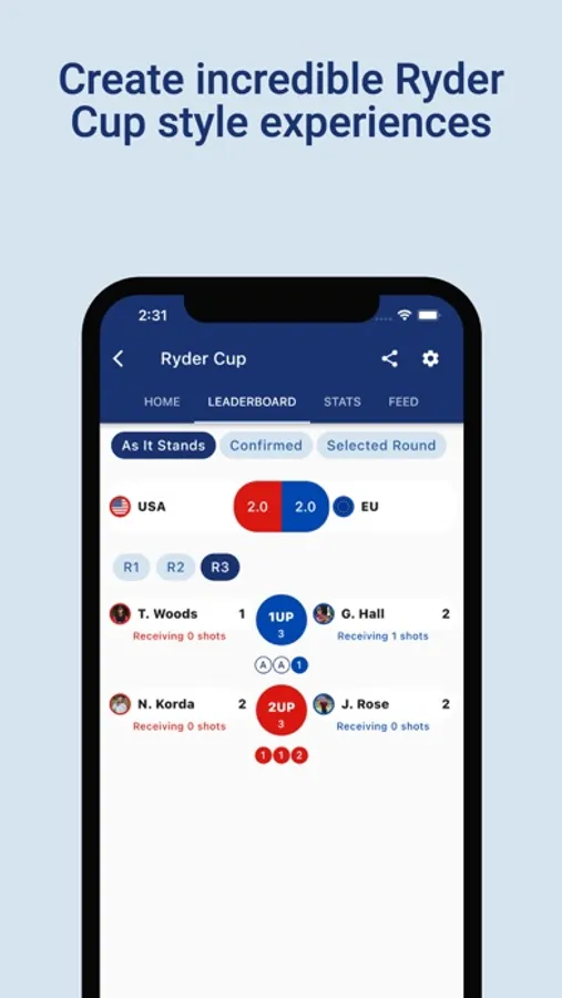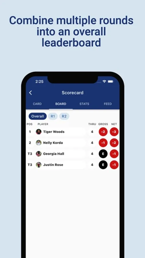Want to know what score you need on the 18th to beat your friend, or maybe even win the championship? Now you can. Players have access to the full leaderboard which is updated in realtime, just like a professional tournament.