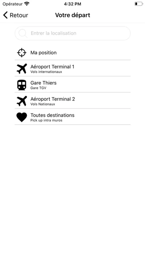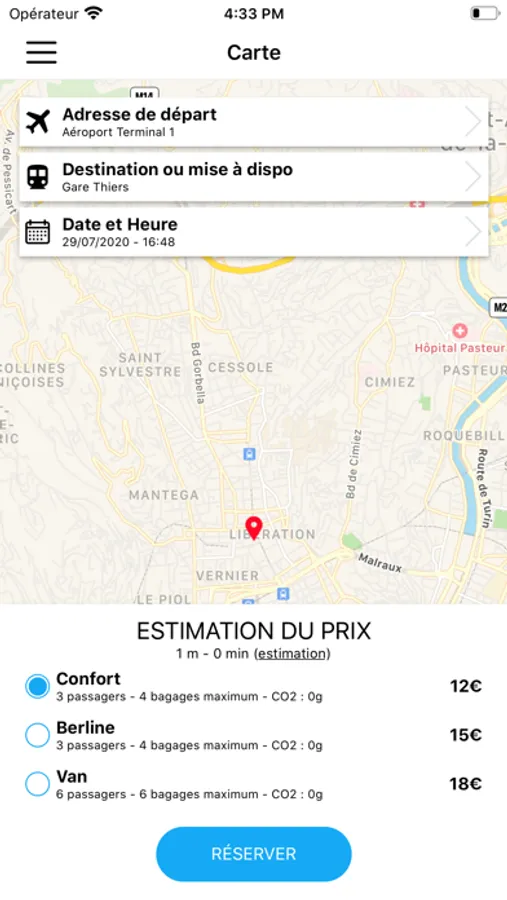 Choisissez une destination, le prix par gamme de véhicule, choisissez votre mode de paiement, commandez, vous obtiendrez le délai d'approche du véhicule.