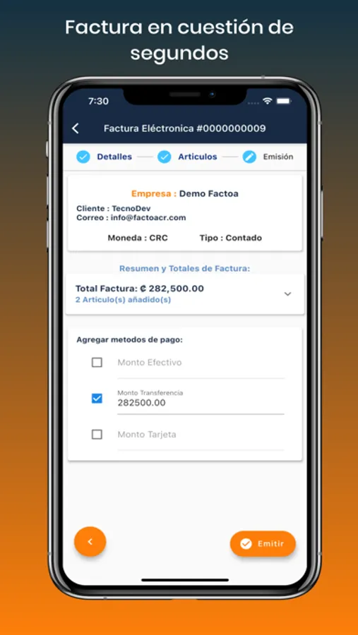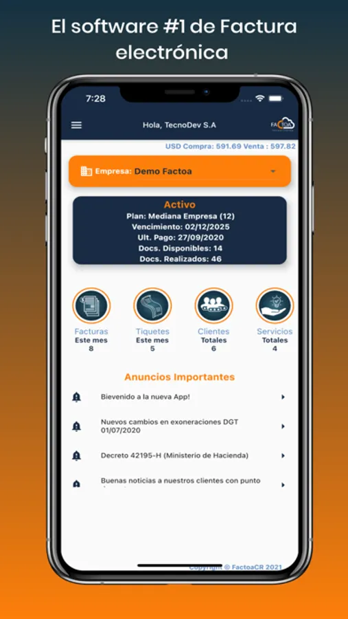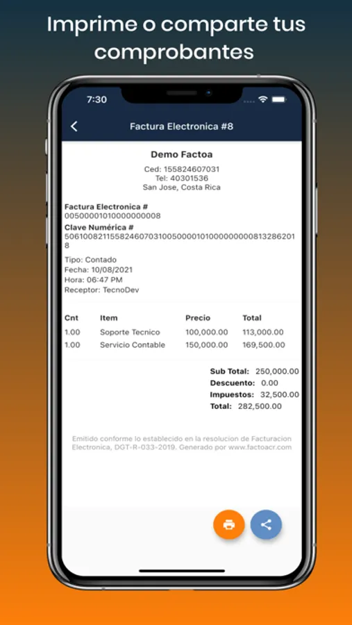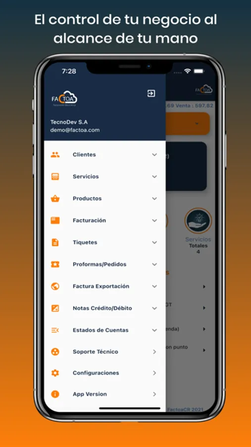 Completo sistema de facturación electrónica interconectada con servicios tributarios. Esta aplicación te permitirá facturar y llevar el control de tu negocio de manera sencilla desde la comodidad de tu dispositivo Móvil.