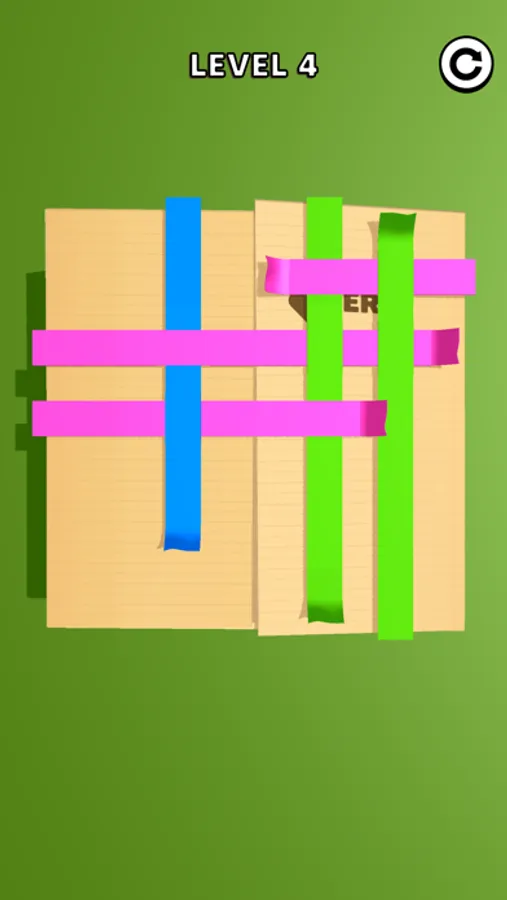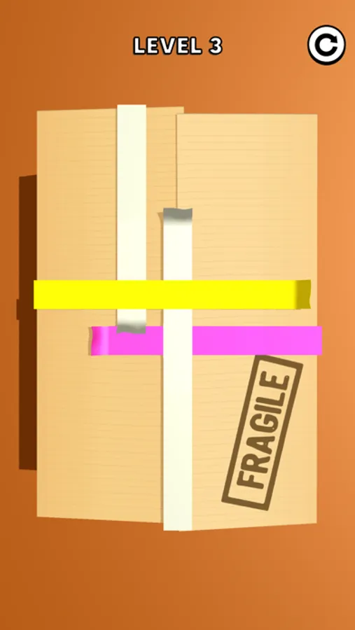 In Unboxing Master you are presented with boxes closed with colorful tapes that need to be taken off to reveal what is inside the box: you do that by tapping to tapes in the right order to remove them.