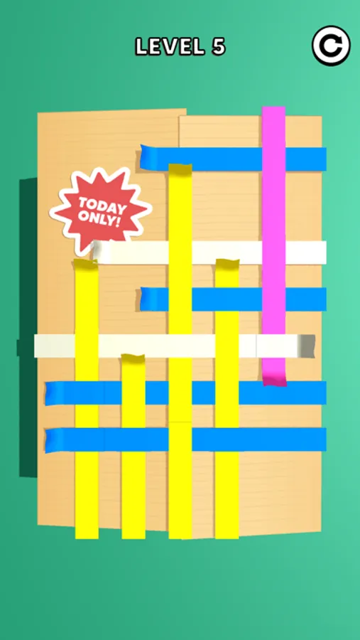 Sounds simple, right? Well, things get twisted pretty quickly because the tapes are tangled. You have to think carefully about which one to remove first in order to succeed in this game!