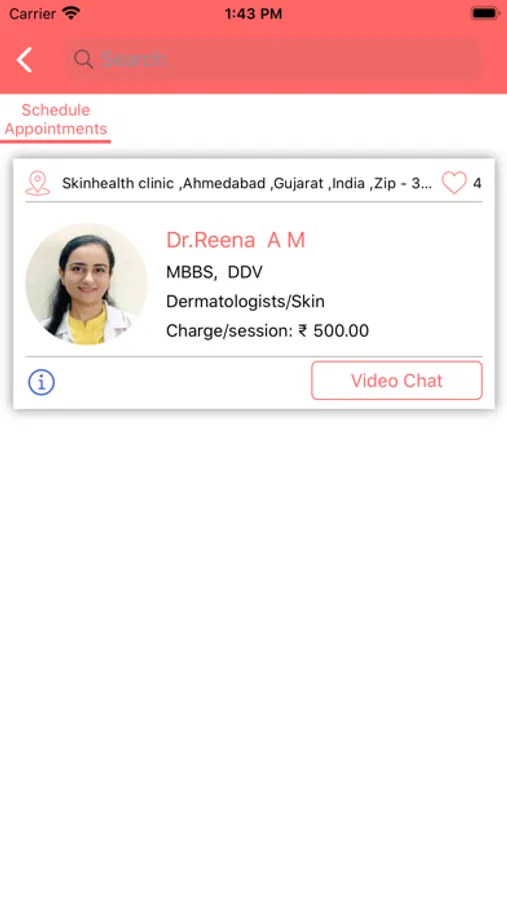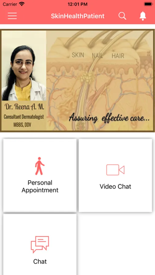 Skin Health app connects patients to Dr Reena A. M. This app lets you book appointments, video chat and text chat with the doctor.