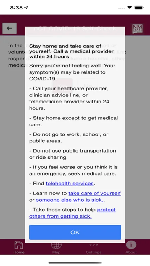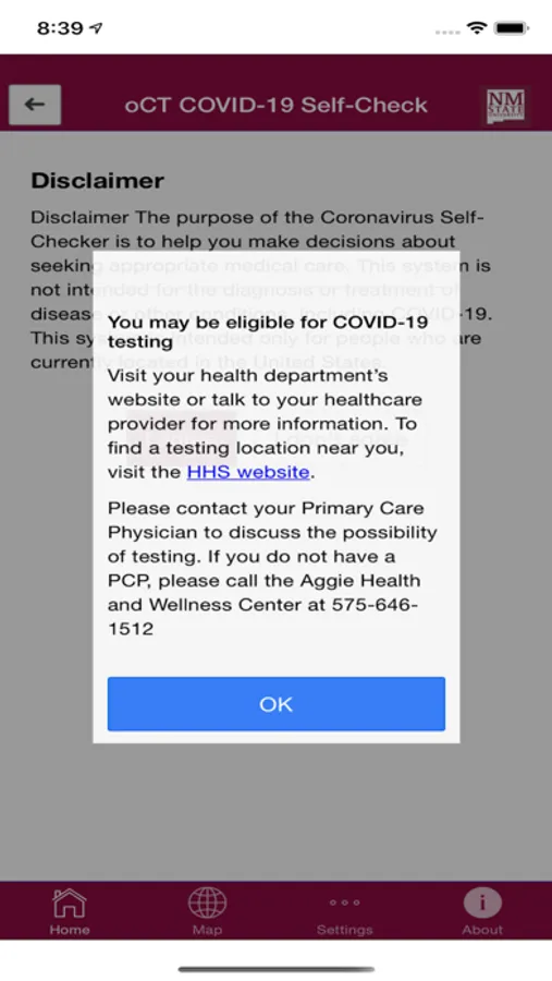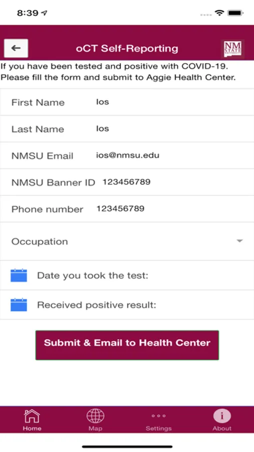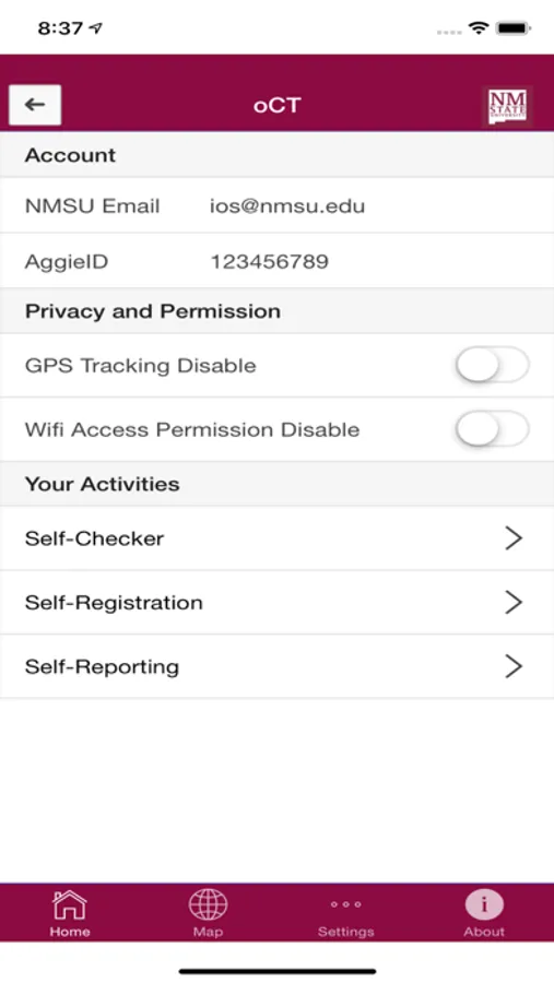 The Aggie-COVID-19 app is designed to support the return to campus activities of New Mexico State University (NMSU). The app allows students and staff to participate in the following activities: