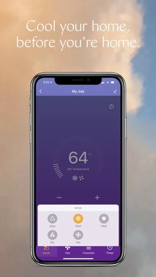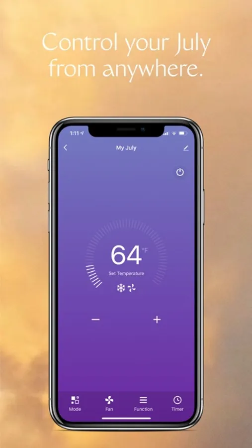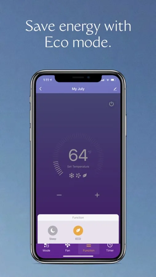 Download the app to connect your July to your home WiFi network. You can control your July A/C from the app, even when you're not home. Set a smart routine so that July knows when to turn on or off - just the way you want it. Save money and energy with Eco mode.