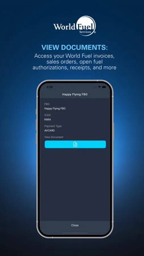 • Pay in the app when you use World Fuel Contract Card or AVCARD, so you never have to leave the aircraft