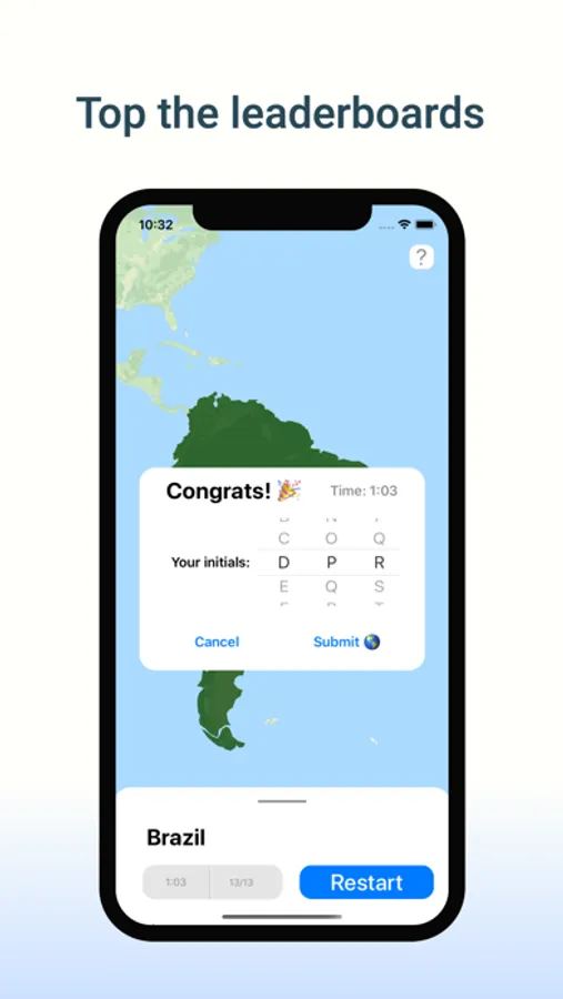 Study/Practice modes allow you to learn your way around the world with borders and names to prepare for the real test!