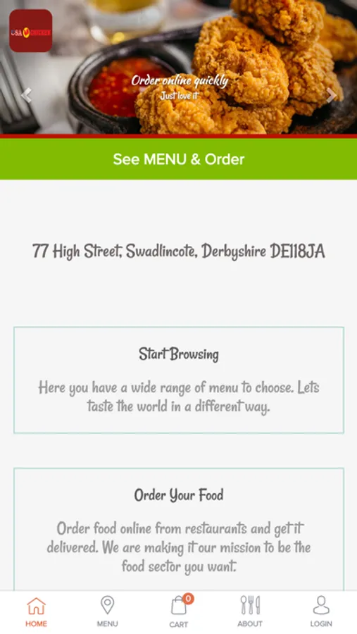 We're also available for ordering on https://usaswad.co.uk/storemenu and also on https://kuick.com/order/usa-chicken-pizza