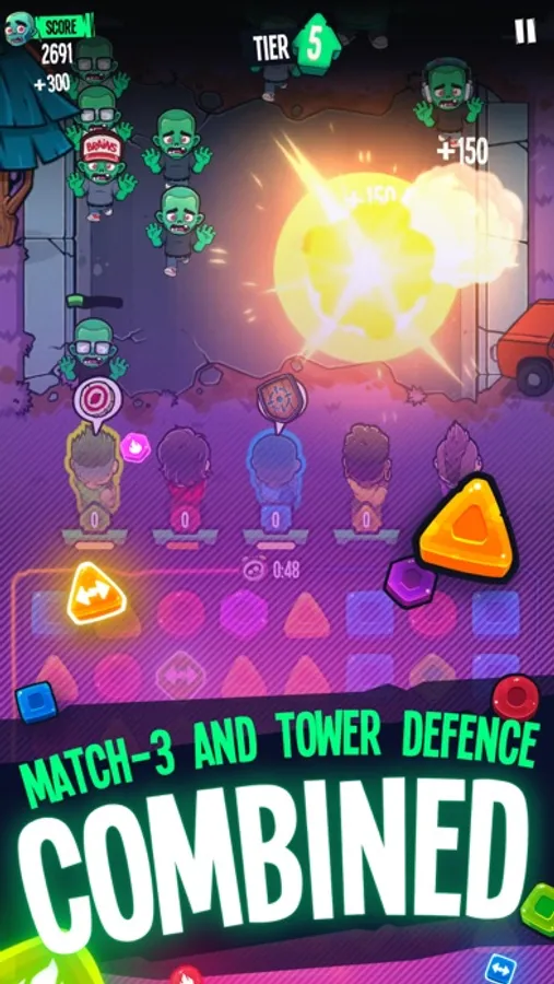 Compete with other players in this Match-3 / Tower Defense blend!