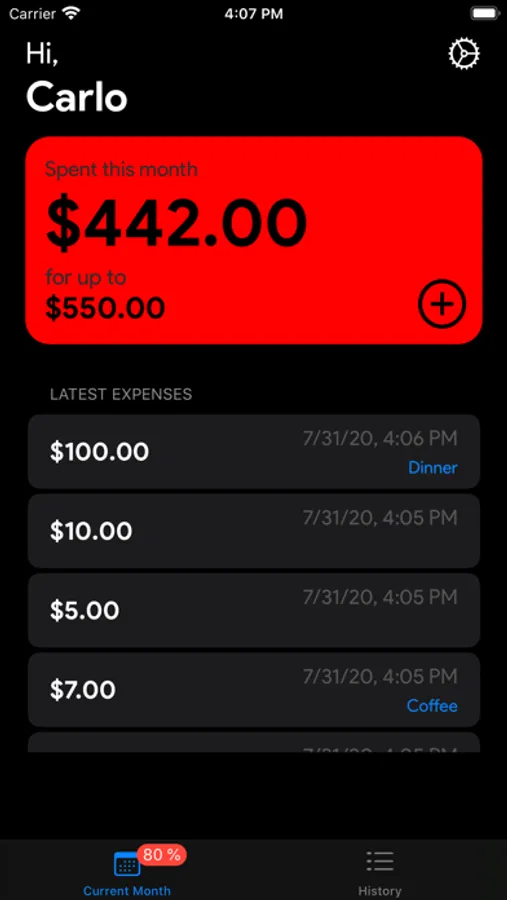 • Set a monthly budget and receive notifications when you’re nearing your limit.