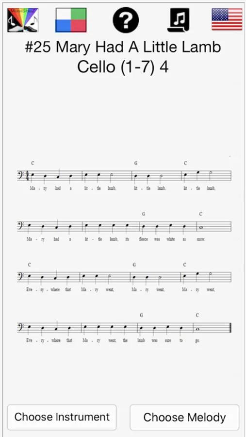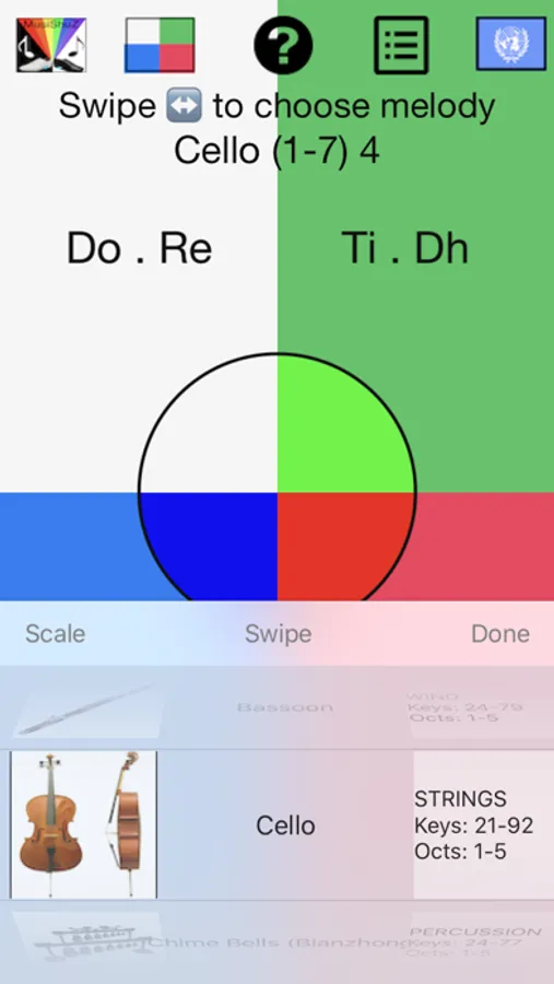 Imagine that your feet are your hands. Play the MusiShuZ by sliding each shoe as if it is a computer mouse. Slide it to one of the four corners of an imaginary computer or iPhone screen. When you press on the heel of a foot a note is going to play. The notes playable by the left foot in the Beginner's mode are Do, Mi, Sol, Ti (C, E, G, B) and the notes playable by the right foot are Re, Fa, La, Dh (D, F, A, C). The mapping of notes to screen corners (quadrants) is described in the instructions of the MusiShuZ app. The duration of each note is controlled by the amount of time you are pressing on each shoe heel. You can also control the loudness (sound volume) of each note by the distance from the screen center that you slide your feet before you press on the foot heel. Dozens of practice melodies from 18 of language regions are also featured in both sheet and chart music notations.