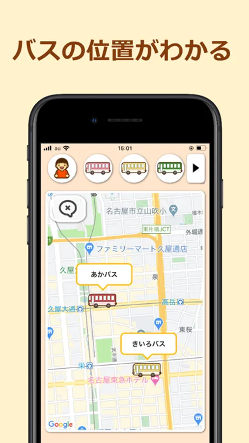 バスの位置情報や接近情報を確認できるバスロケーションアプリです。