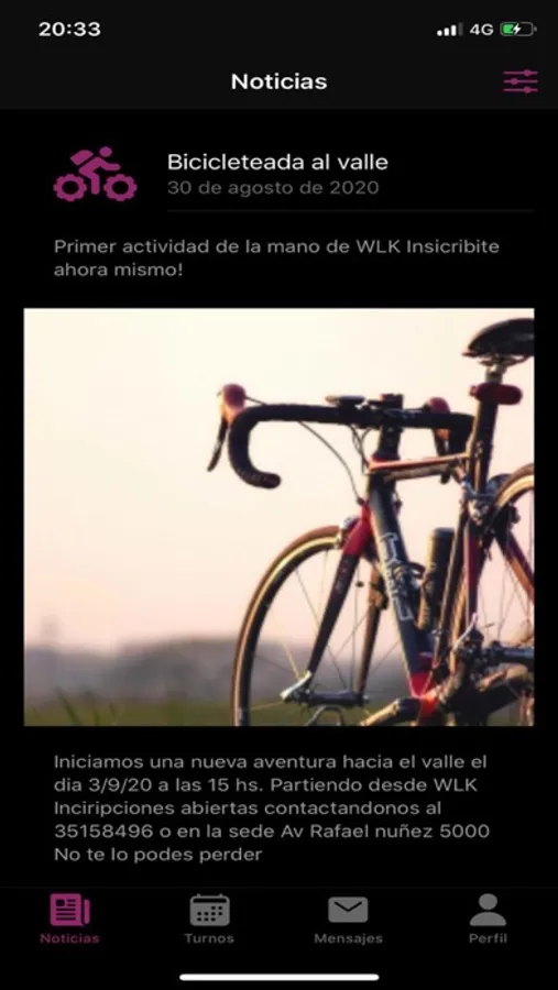 Con la app de WLK, vas a poder enterarte de lo ultimo que pasa en la comunidad mediante las noticias, podes interactuar con nosotros para sacarte tus dudas y vas a poder gestionar tus turnos, para el taller y todo tipo de actividades que organiza WLK.