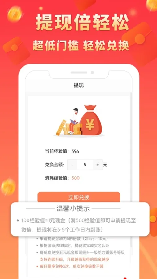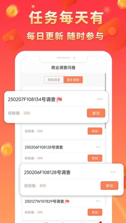 完成调查问卷可获得50-10000经验值奖励,通过经验值升级即可兑换微信红包,5元起兑~
