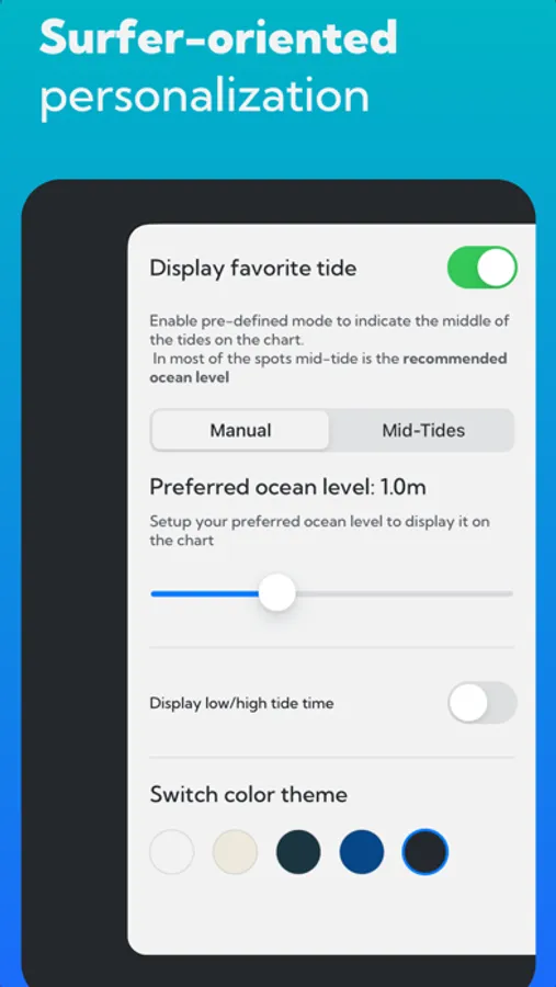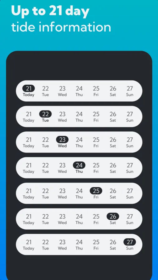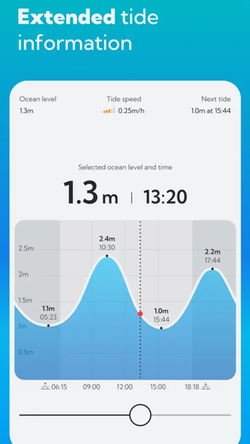 Unique app design: by moving the pointer you can decide what time to go surf, swim or chill on the beach.