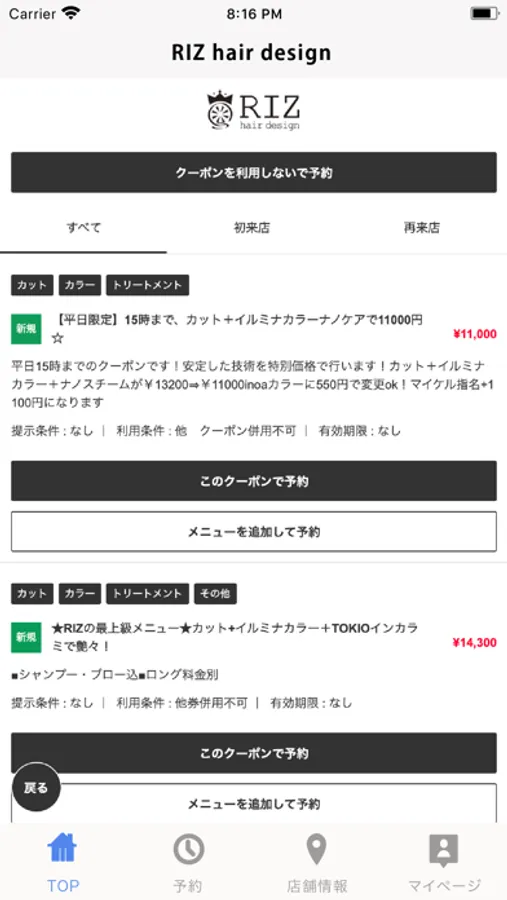 お得なクーポンが配信されます。ネット予約時にクーポン利用での予約も可能なので来店時もスムーズに施術頂けます。