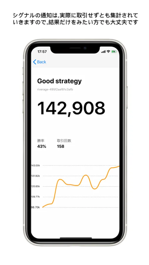 姉妹アプリのRiverage.BackTestにて作成したトレード戦略を通知します。
