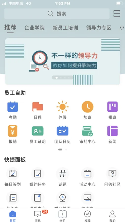 6、员工企业服务自助:考勤、休假、加班、报销、日程、待办事项、排班、工资单等