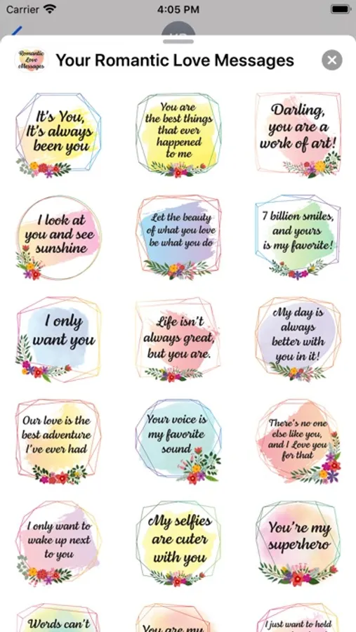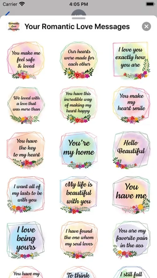50 beautiful flowers decorated stickers with watercolor background love text messages ready for you to send to your girlfriend or boyfriend, husband or wife.