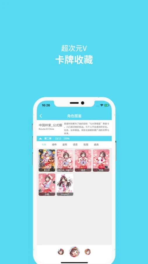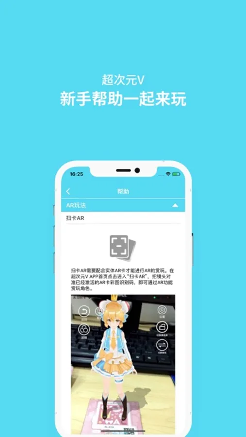 超次元V使用了最新的AR技术,能够让你真实的体验到于虚拟角色互动。购买并激活官方推出的AR卡可享受虚拟角色们的独家定制内容。