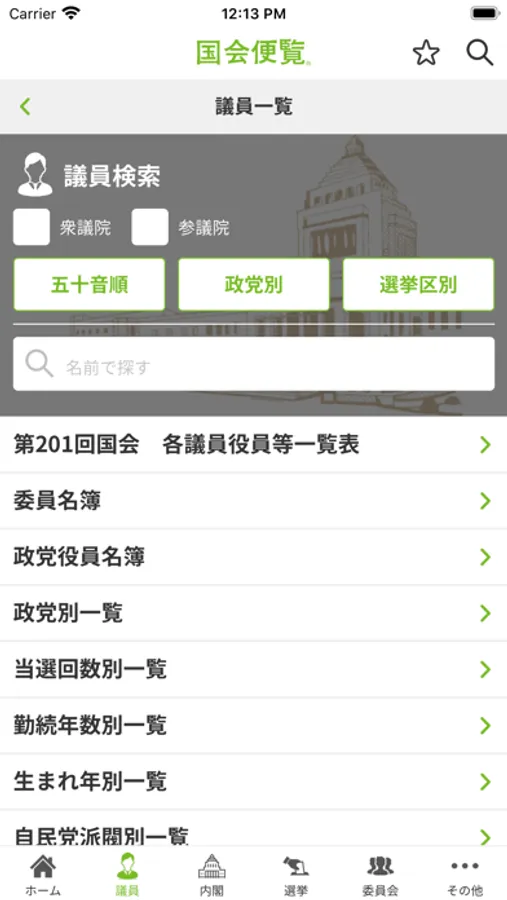 昭和29年創刊の国会・政界関係者のバイブル『国会便覧』のアプリ。第201回通常国会