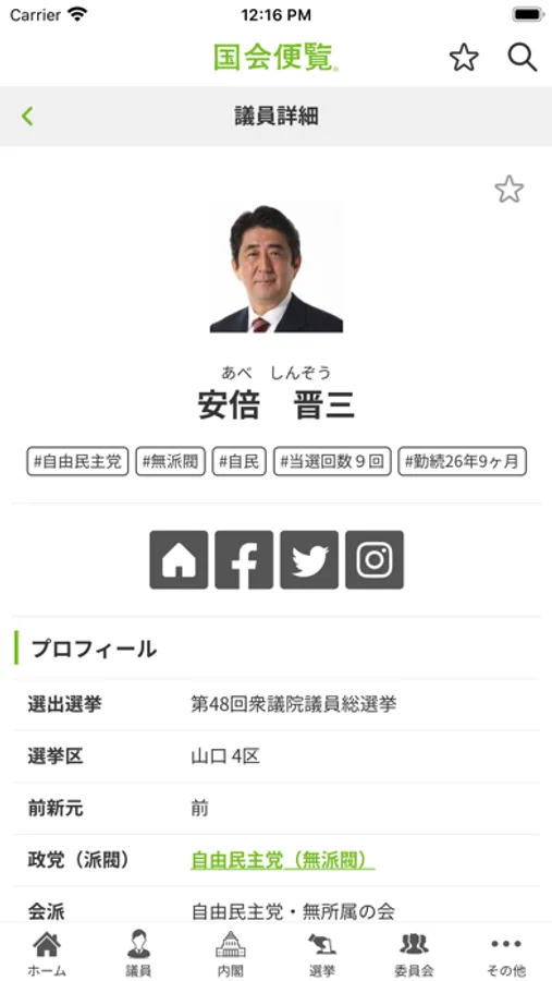・衆参両院の全国会議員のプロフィール