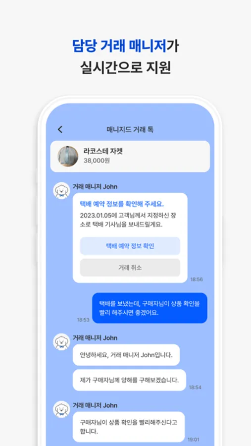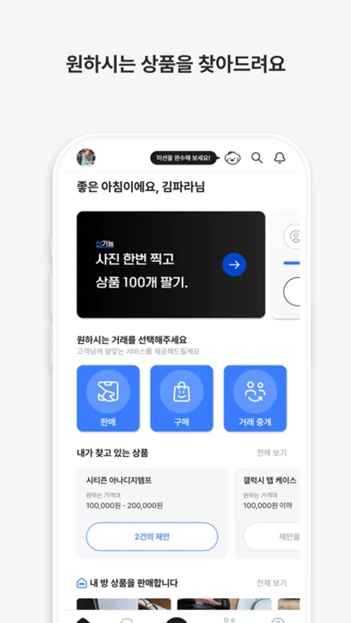 번거로운 중고거래 과정은 이제 거래 매니저에게 맡기세요.
