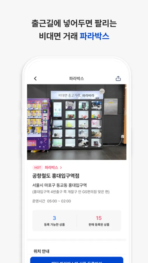 파라바라에서는 각 파라박스의 위치가 어디에 있는지 더 알게 쉽게 하기 위해, 내 위치를 지도에 표시해요. 내 위치정보를 별도로 저장하거나 관리하지는 않아요.
