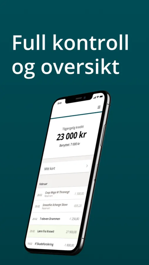 Mitt Kort viser tilgjengelig og benyttet kreditt på kortet ditt. Du får også tilgang til diverse korttjenester: