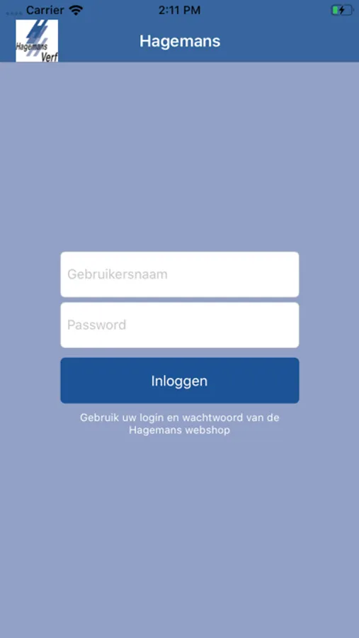 - Log in op de app met dezelfde login gegevens die u gebruikt op de Hagemans-Verf webshop.