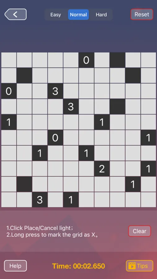 2. The objective is to place light bulbs on the grid so that every white square is lit.
