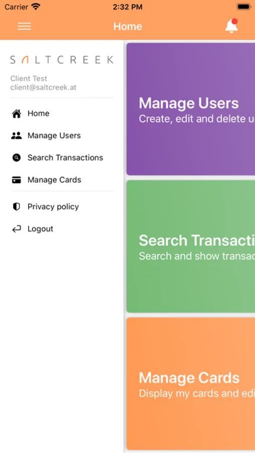 The Saltcreek Client Admin App showcases some standard use cases, that fuel card issuers can provide for their clients.