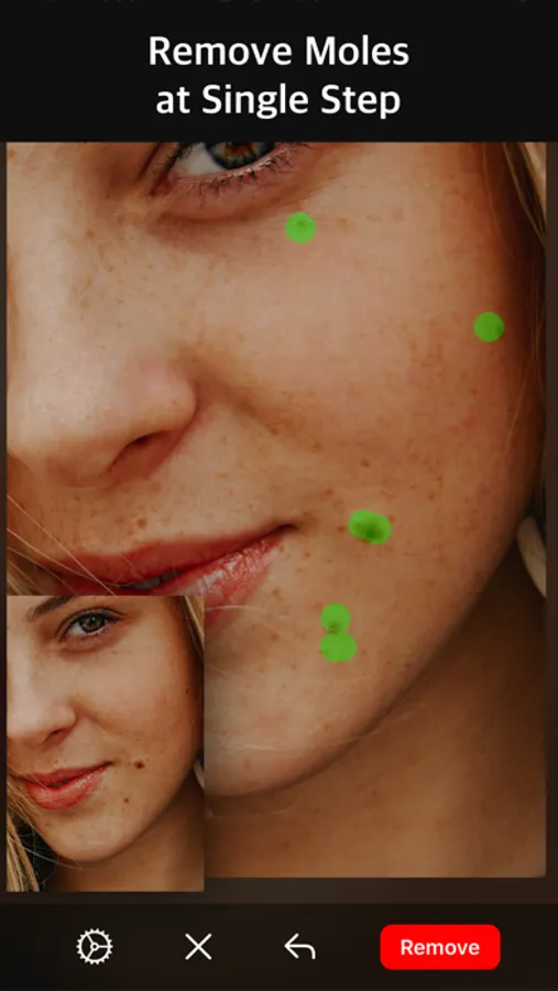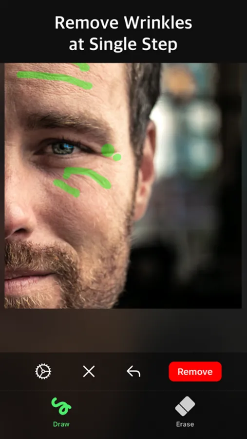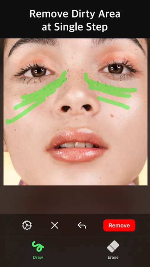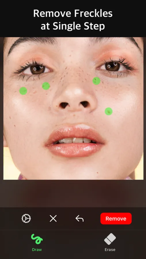 You can remove freckles, moles and wrinkles just by tapping or drawing lines on them. You can also smoothen your skin at just single step.