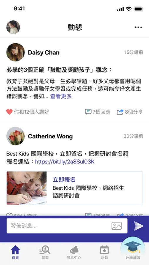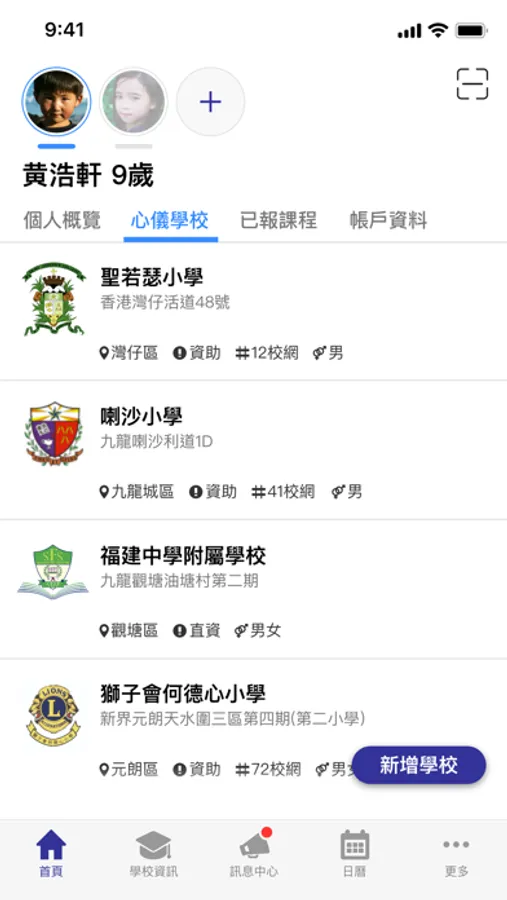 - Subscribe to your favorite schools for your children.