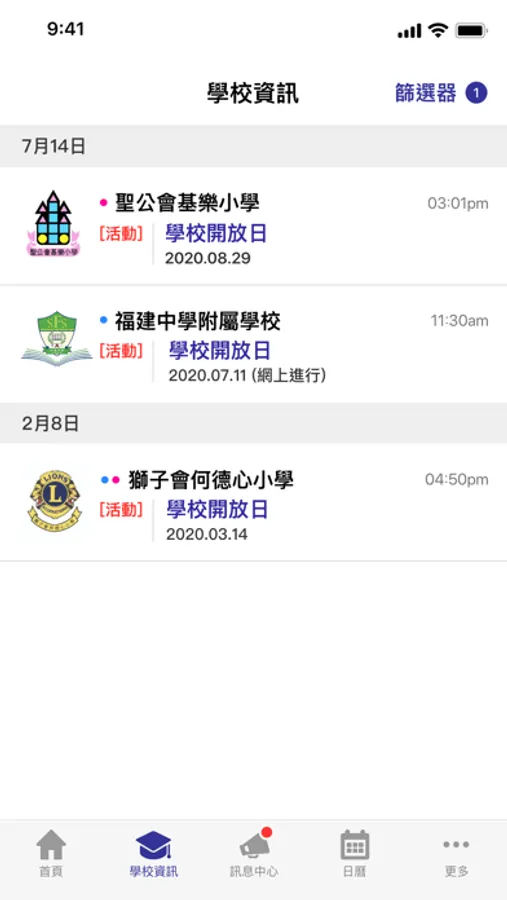 - Receive notifications for the latest school admission info and events of the subscribed schools.