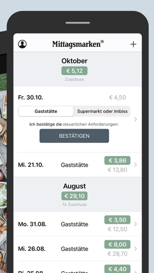 Für die Benutzung der App ist ein Mittagsmarken® Benutzer notwendig.