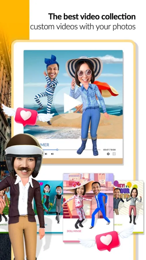 Celebrate love, gay pride, mother´s day, father´s day and other important days by sharing funny videos that lift your spirit. There’s also a section for creative videos with animations. Make beautiful animated videos, enjoy the music from 80s to electronic pop, and pick the perfect theme to make everything look great.