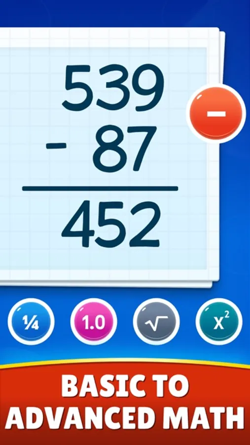 Our math games for kids is super fun! Solve a wide variety of math puzzles, brain teasers, and brain math puzzles using nothing more than basic arithmetic. Pick up new math skills in addition, subtraction, multiplication, and division, or get more advanced with fractions ¼, decimals, and mixed operations.
