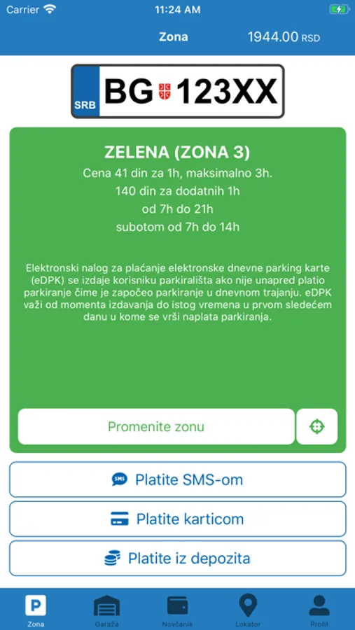 · Plaćanje parkiranja na opštim parkiralištima u zonskom sistemu