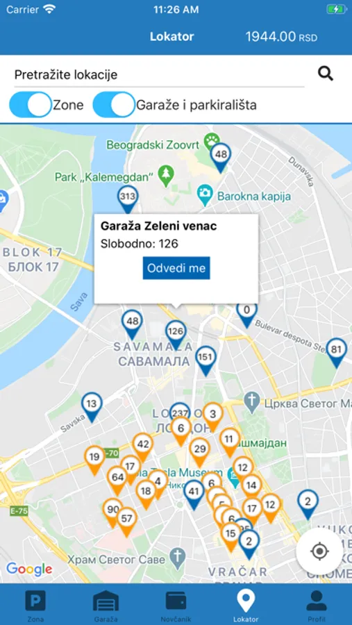· Navođenje do slobodnog parking mesta u zoniranom delu grada gde su ugrađeni parking senzori