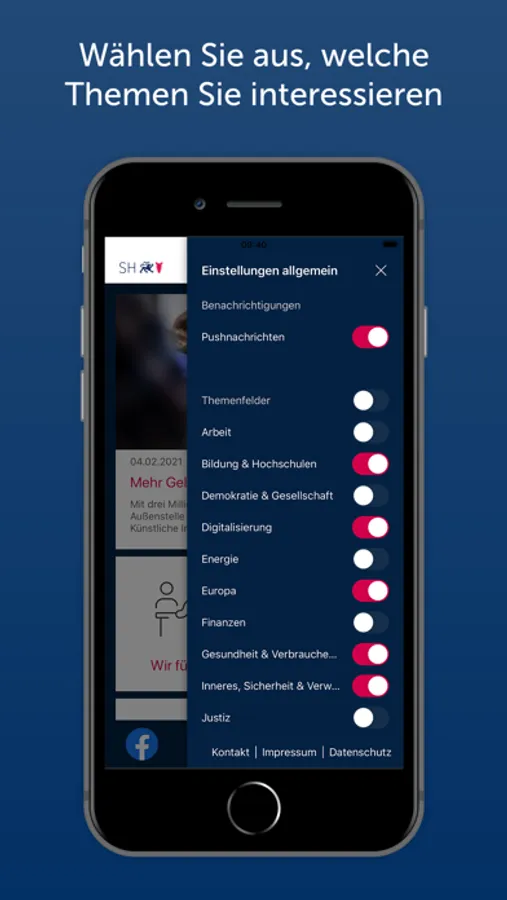 Unter „Aktuelles“ informiert die App über alle wichtigen politischen Ereignisse im echten Norden. Hier können Sie einzelne Themengebiete auswählen, die Sie besonders interessieren.