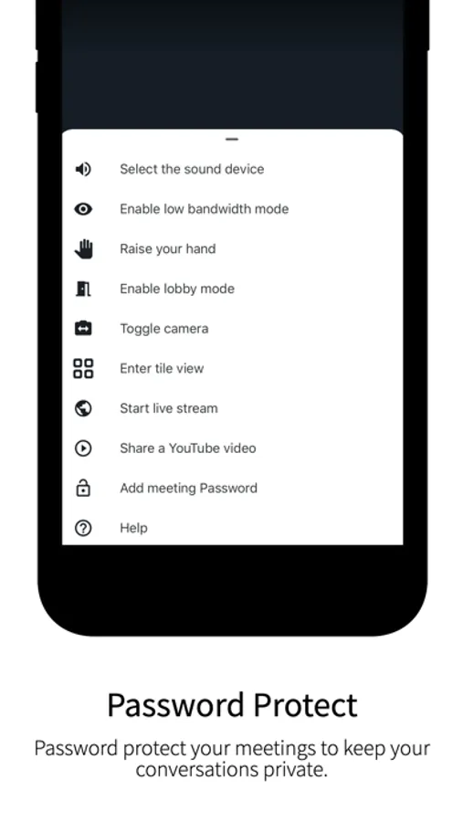 - Create meetings and share the meeting link or the meeting code directly from the app.