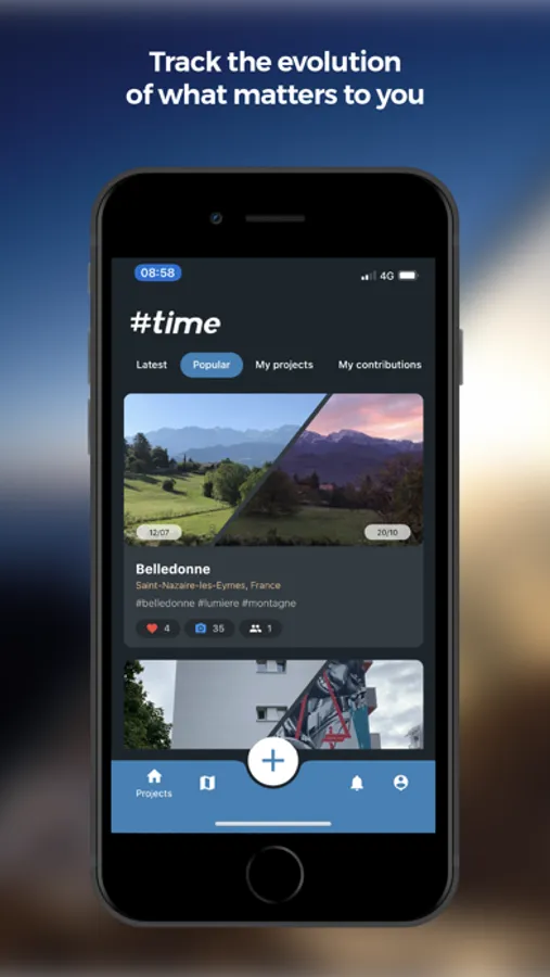 For those who are looking for a tool allowing to follow long-term phenomena or everyday changes (the evolution of their environment, the passing seasons, work on their house, or any other project that were yet impossible to share), Enlaps has created the first collaborative mobile application using time comparison (before / after images) thus generating a new high-engagement video media: #time.